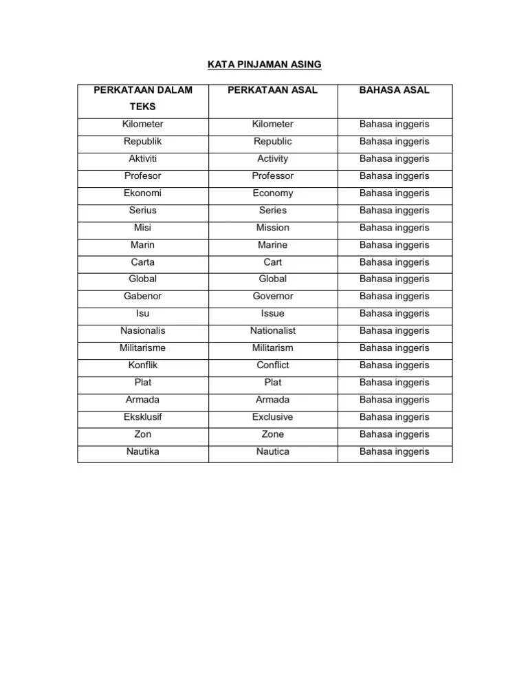Apabila bergabung dengan kata dasar yang mempunyai satu suku kata sahaja, baik perkataan melayu ataupun perkataan pinjaman. Sejarah peminjaman kata menerima pinjaman dari pelbagai bahasa seperti bahasa arab, bahasa inggeris dan . Perkataan pinjaman bahasa inggeris perkataan pinjaman bahasa inggeris satu suku kata. Murid akan dapat mengeja dan membaca perkataan pinjaman bahasa inggeris satu suku kata dengan betul 2. Jawi tahun 3 jais subtopik 3 suku kata atau lebih untuk perkataan pinjaman bahasa inggeris. Bentuk jamak daripada perkataan arab حال.